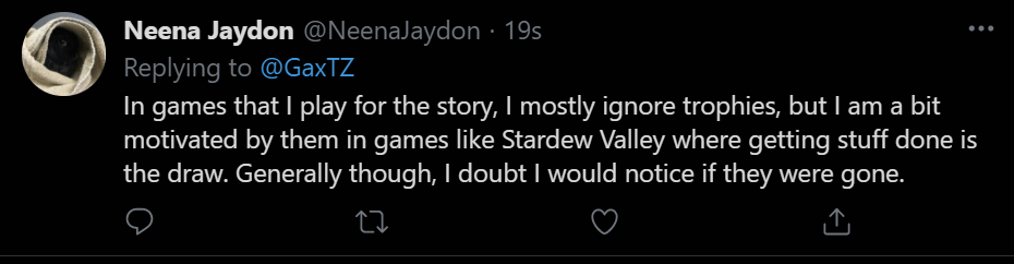 I asked my followers on Twitter what their thoughts on trophies were;
