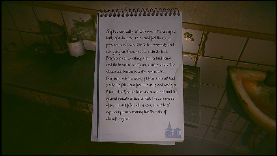 Although at one point you pick up a piece of pipe and get yourself ready to bash something’s brains in, there is no combat. Nothing will jump out at you – although there are a couple of dramatic stings of music followed by flashes of shadows that I’ll admit made me jump.